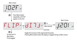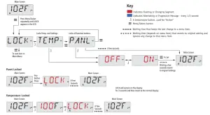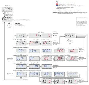Indicates Flashing or Changing Segment Key A temperature button, used for “Action” Menu/Select button Indicates Alternating or Progressive Message – every 1/2 second Waiting time that keeps the last change to a menu item. Waiting time (depends on menu item) that reverts to original setting and ignores any change to that menu item.