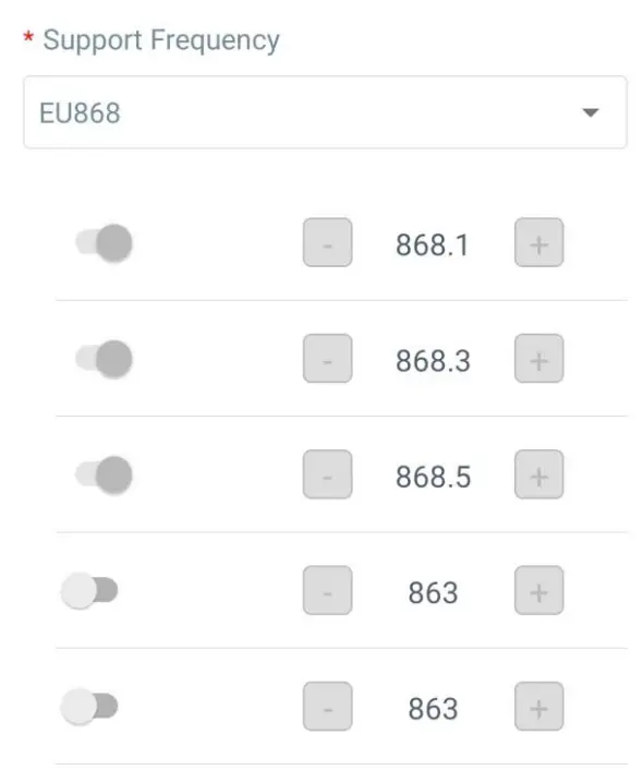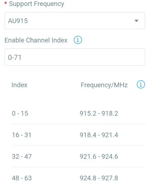 If frequency is one of CN470/AU915/US915, you can enter the index of the channel that you want to enable in the input box, separating them by commas.