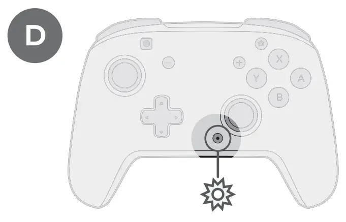 First press A/B/X/Y or the Dap to wake the controller. In the home screen, select [Controllers] > [Change Grip/Order]. On the next screen, press and hold the Sync button for at least 2 seconds. Once paired, the player indicator will be illuminated.