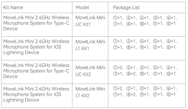 Movielink Mini is the new microphone system that transmits audio using 2.4GHz wireless frequency, with the characteristics of compact and portable, long battery life, and compatibility with various devices by different adapters. Kits include one transmitter and one receiver, as well as kits include two transmitters and one receiver available for you choice. It’s suitable for live streaming, interview, lecturing, video recording, etc. Please read this manual carefully before using to make sure the correct operation and exert the optimum function.