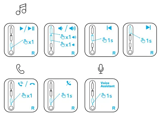 To stay aware of your surroundings while listening to music, activate the transparency mode by holding the right panel for 1 second or pressing the NC button.