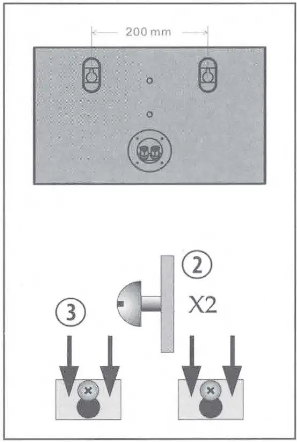 Ensure that the wall is sound and can support the product. Drill two 5mm holes in the wall 200mm apart.