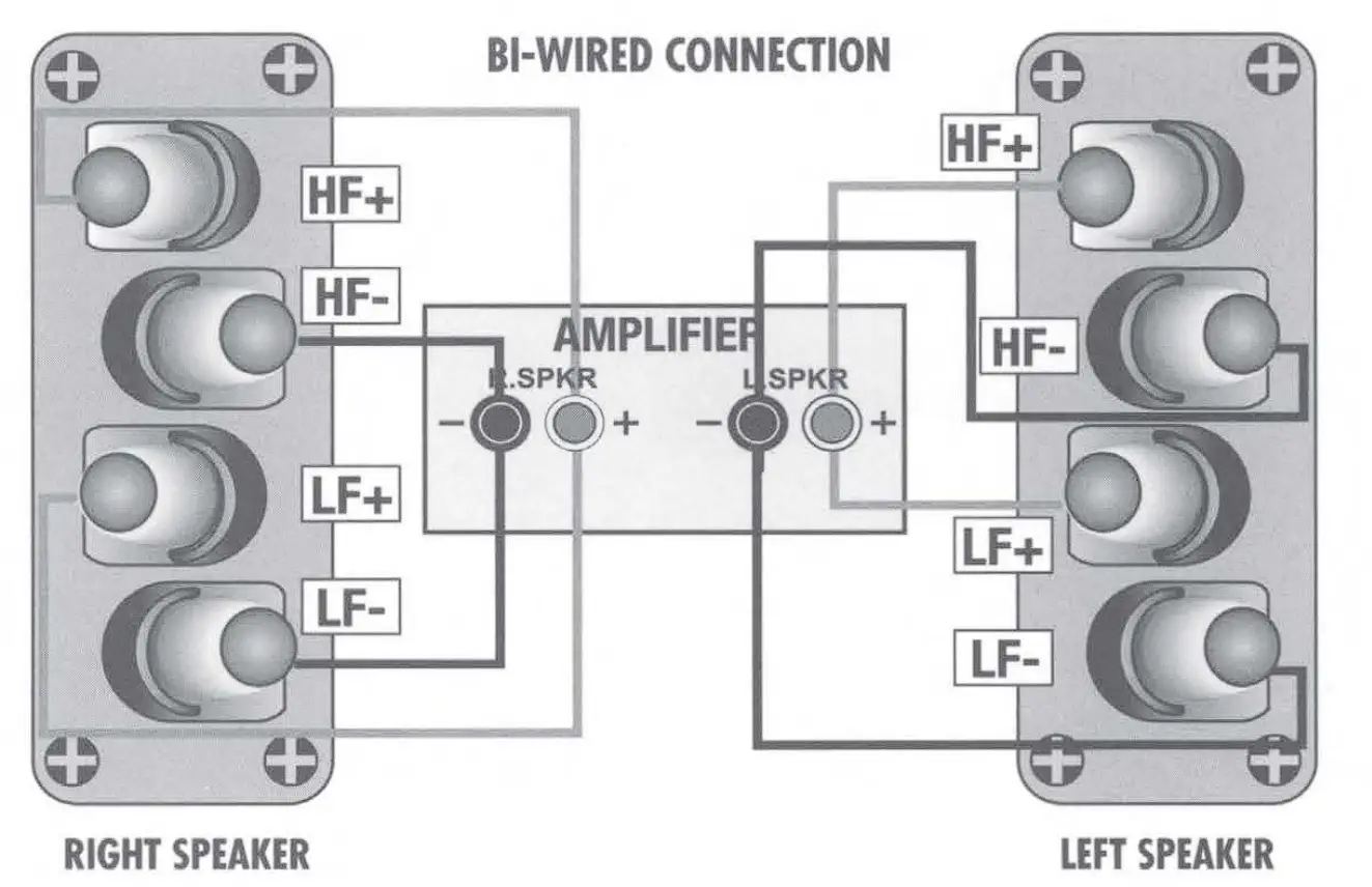 Connecting loudspeakers correctly (in phase} is essential whether the system is stereo or multichannel. This is especially important if you are bi-wiring – if only one element in a bi-wired system is incorrectly connected (out of phase}, the effects can be very noticeable yet hard to pinpoint.