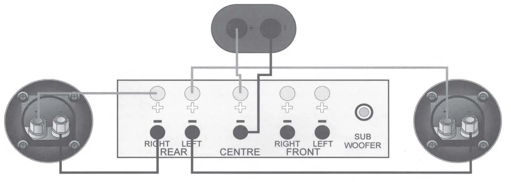 The Centre channel speaker may be connected as shown, or bi-wired.
