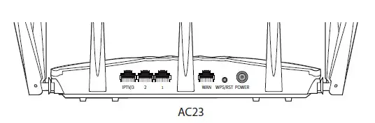 - and IPTV/4 for AC19; port 1, 2, IPTV/3 for AC23) of the new router using an Ethernet cable.