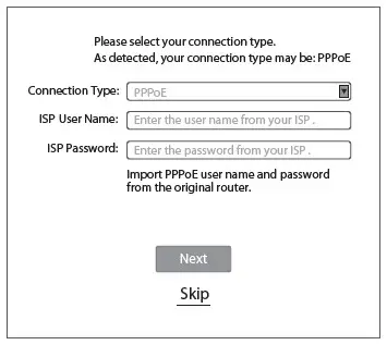 Note PPPoE is used for illustration here. If you migrated your PPPoE user name and password from your original router, this router auto-lls the ISP User Name and ISP Password. - Customize your WiFi name (SSID), WiFi password and the login password as needed, and click Next.