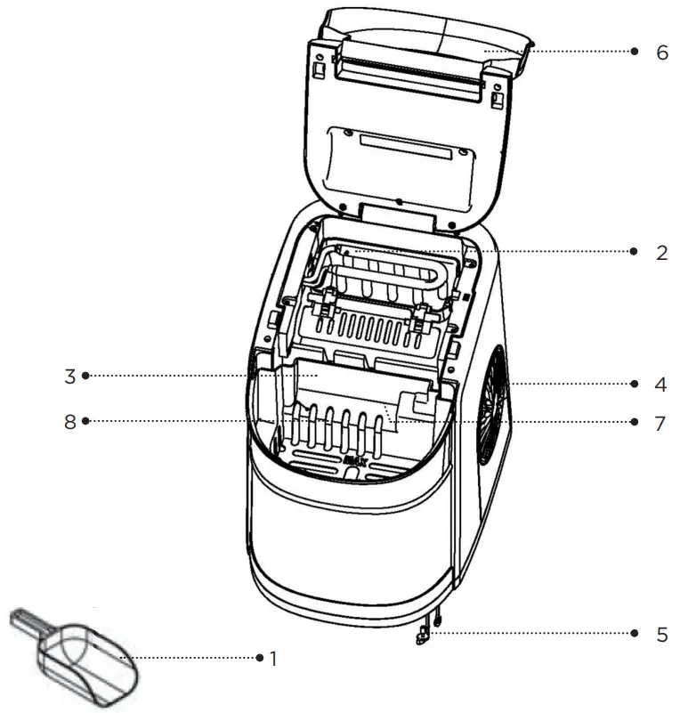 Do not use the appliance within 30 minutes after transportation. Switching on the power too early might cause damage to your ice maker.