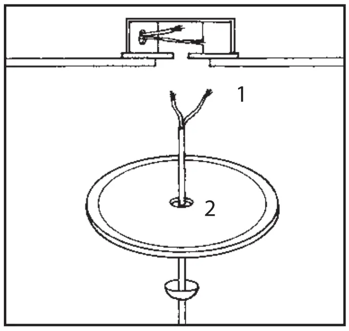 A. Before connecting wires (1) to power source, slip the medallion over hanger bar or chain of fixture (2). Screw the medallion to the wallboard using trim head screws (3).