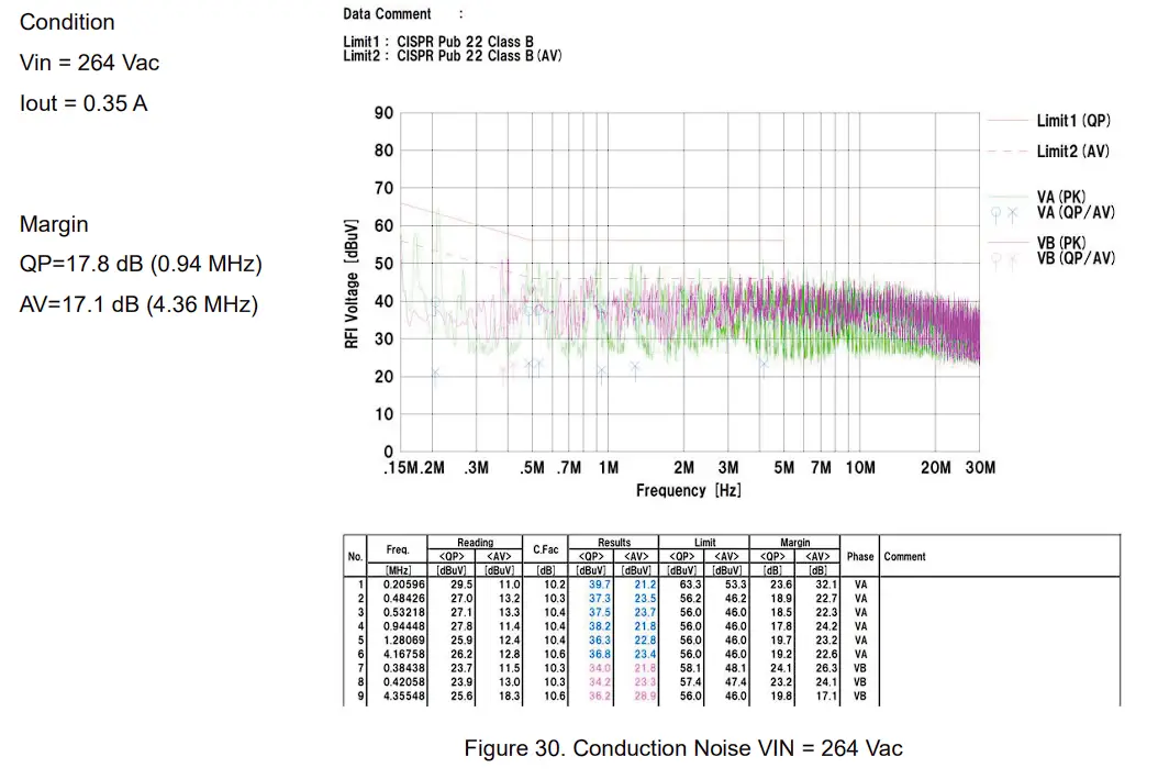 These are representative values and not a guarantee of the characteristics, unless stated otherwise use VIN = 230 Vac, IOUT = 0.35 A, Ta= 25 ° C.