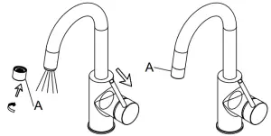 Remove aerator (A). Turn faucet on for 1 minute to flush any debris. Reconnect aerator (A).