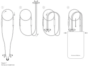 When not used, stow your headphones using the included storage pouch, see Diagram 7. It is recommended the headphones are first powered off: