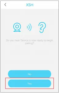 - Before setup, make sure the device is in configuration long press the “Reset Button” for 5 seconds with a voice prompt “The camera is now ready to begin pairing”. Then tap ” Yes”