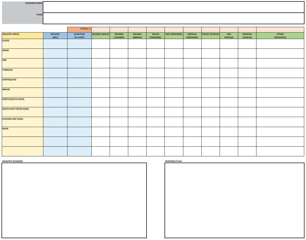 - Propose a disaster scenario using the worksheet.