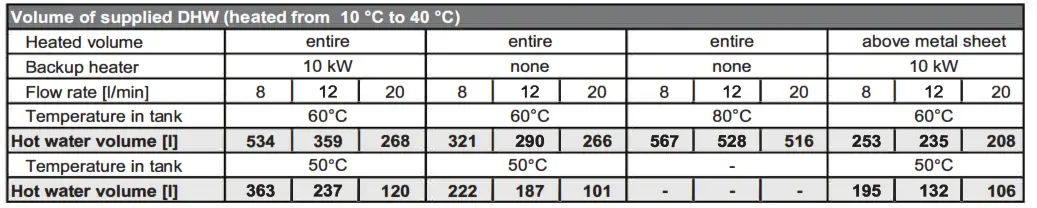 Volume of supplied DHW (heated from 10 °c to 40 °C)