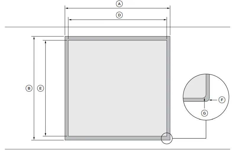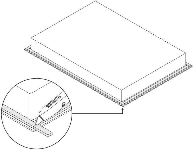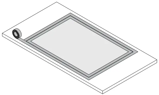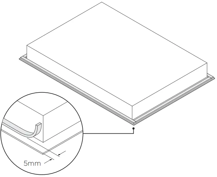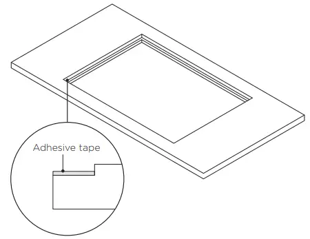 - Apply adhesive foam seal around the glass overhang, 5mm from the edge of the glass. Ensure the adhesive side facing is down to form a continuous seal around the cooktop.