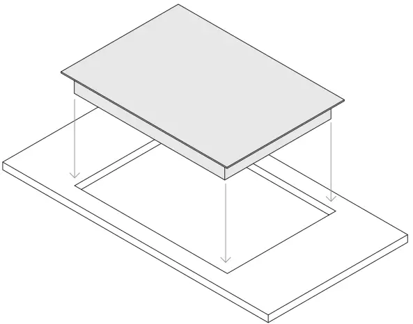 - Gently lower the cooktop into the cutout ensuring you have access below the countertop to fit and secure the brackets.
