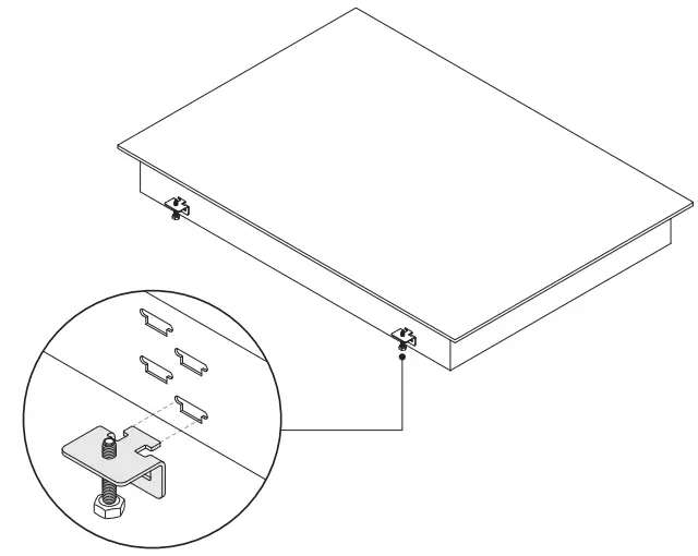 - Locate the side brackets to the appropriate slots on the cooktop chassis. The correct slot height is determined by the thickness of your countertop.