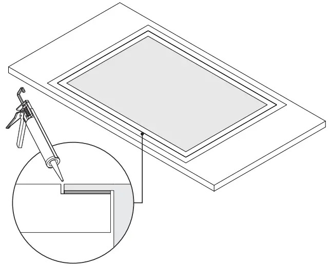 - Apply silicone in the gap between benchtop and cooktop Wipe off excess silicone.