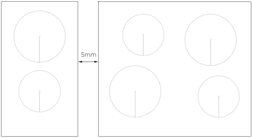 If installing different products adjacent to each other (eg a wok burner next to an induction cooktop), the minimum clearance measurements and cutout dimensions for the different products may vary. Always use the greater distance.