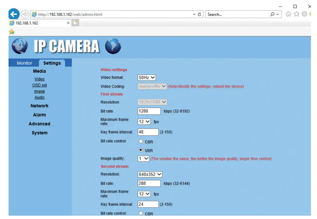 - From Internet Explorer you can view live images taken by the camera, you can play the recordings saved on the micro SD card installed in the camera and you can make various settings related to the network, video, audio and alarm.
