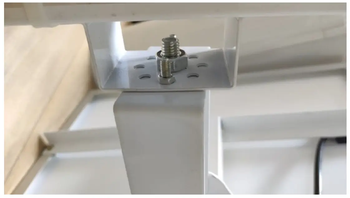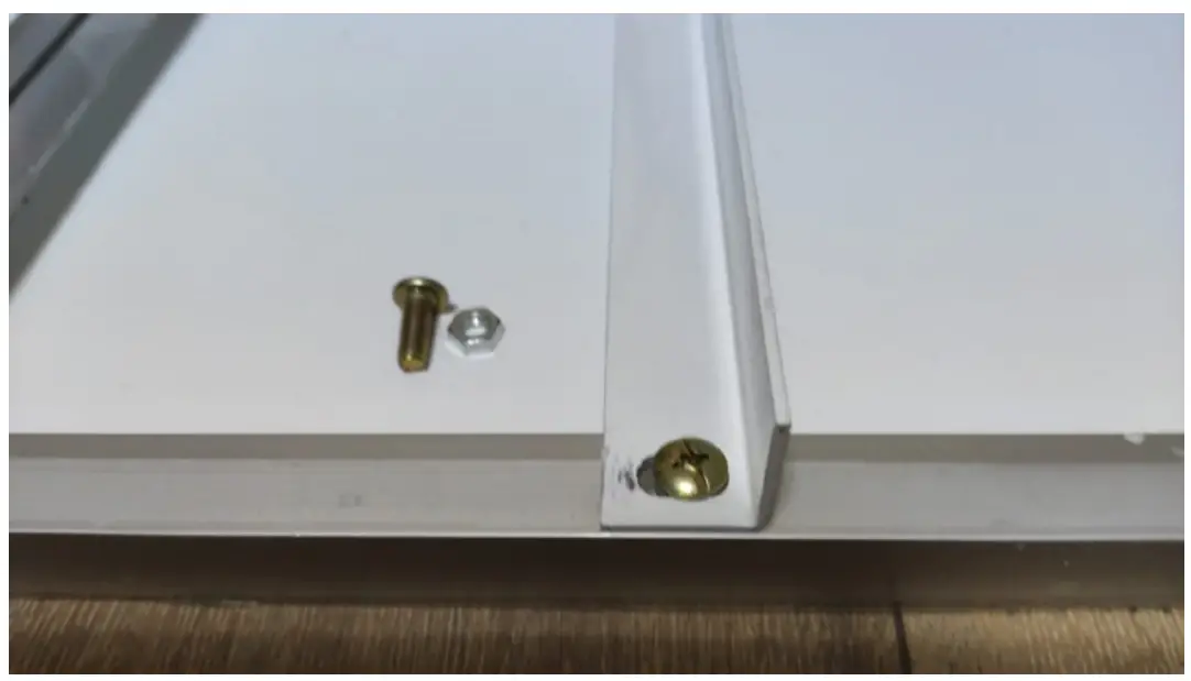 - Connect the first joint using the 4 screws and nuts from the box
