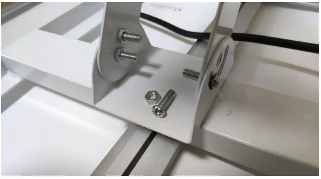 - Install the solar panel on the support using the 4 screws and nuts from the box