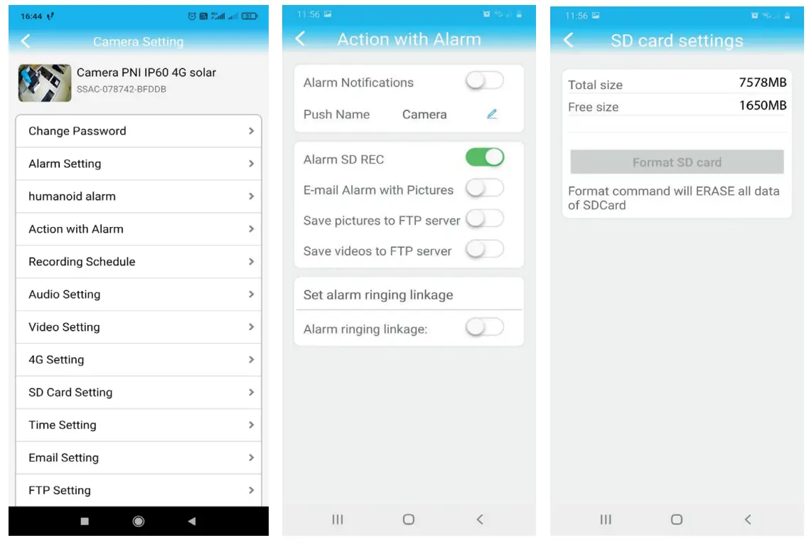 - Activate the Alarm SD REC option.