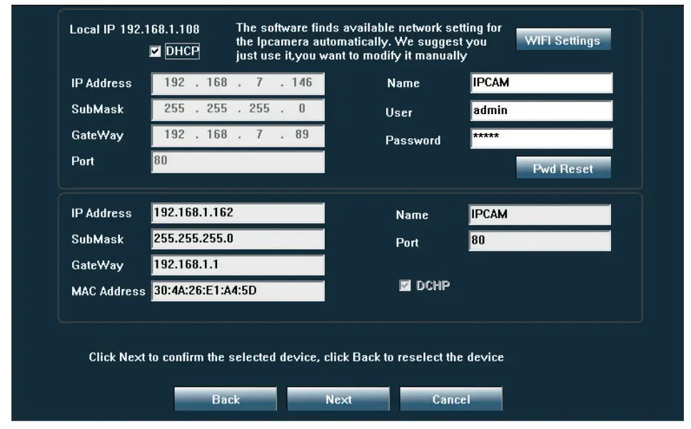 LAN - One result: the camera ID will appear on the screen. Click on the result, rename it, enter the password and complete the procedure.