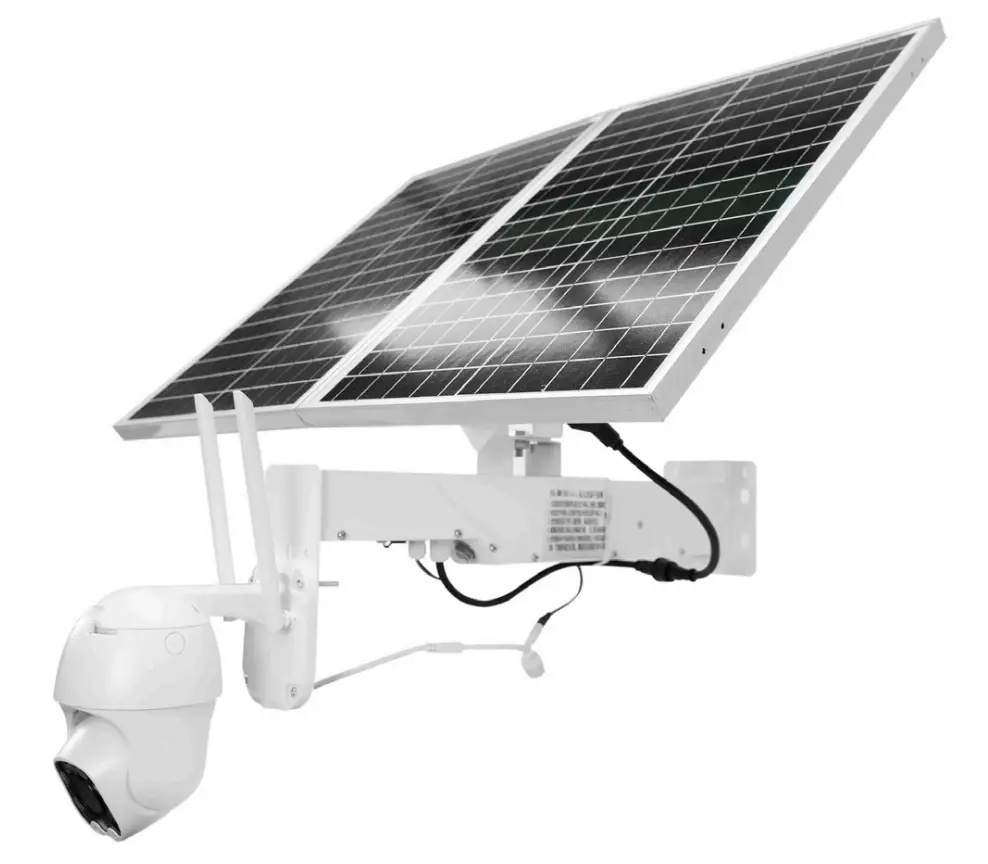 Follow the following steps to connect the solar panel, the battery holder and the surveillance camera. The support has 2 adjustable joints that allow you to orient the solar panel towards the sun.