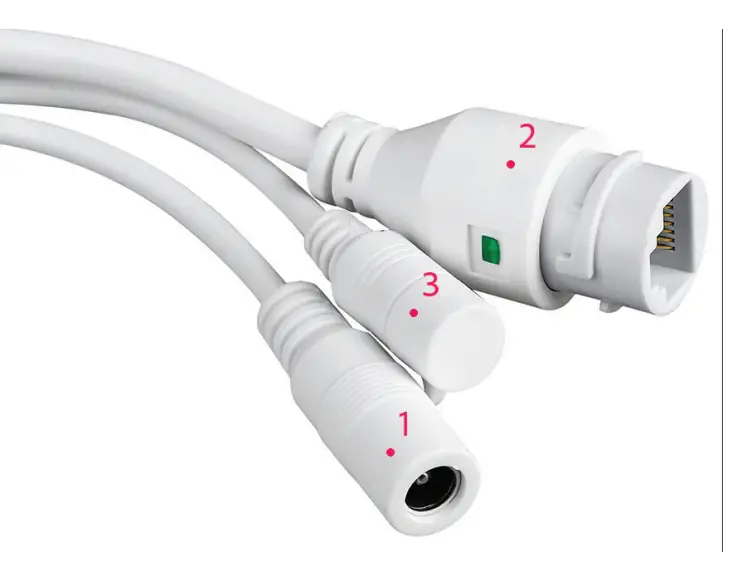 - RJ45 connector – insert a network cable to connect the camera to the