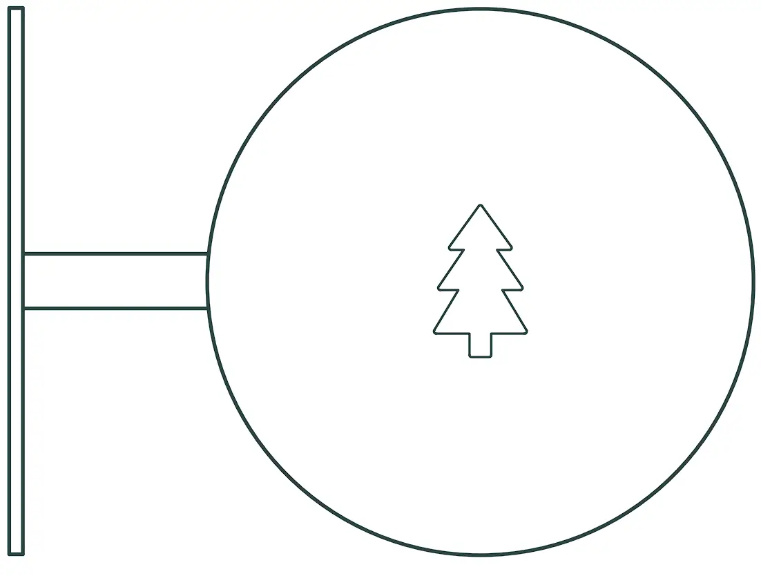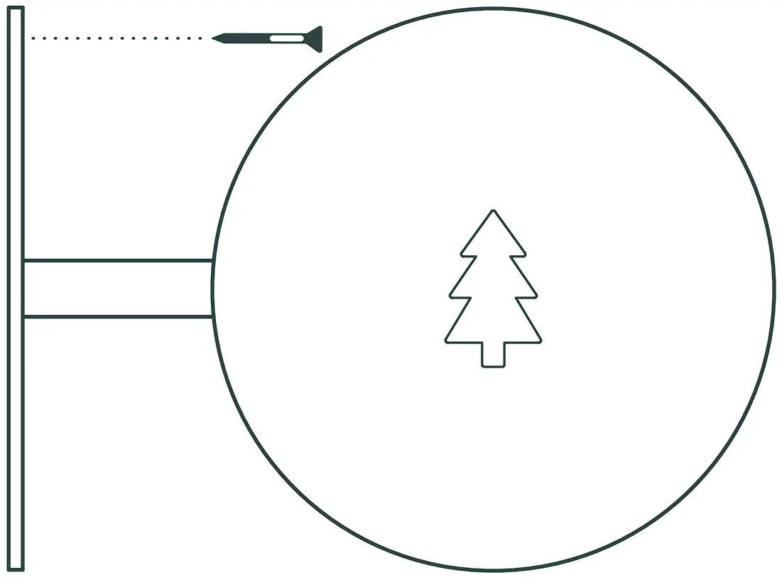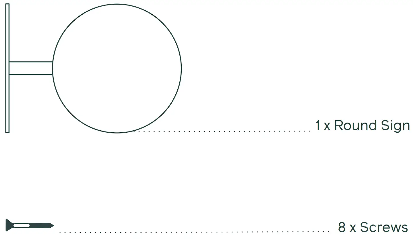 - Select a space to install your Round Sign, somewhere unobtrusive and highly visible. We recommend fixing the Round Sign into studs or a solid wall. Insert the first screw using either the concrete or wood screws provided depending on your installation surface.