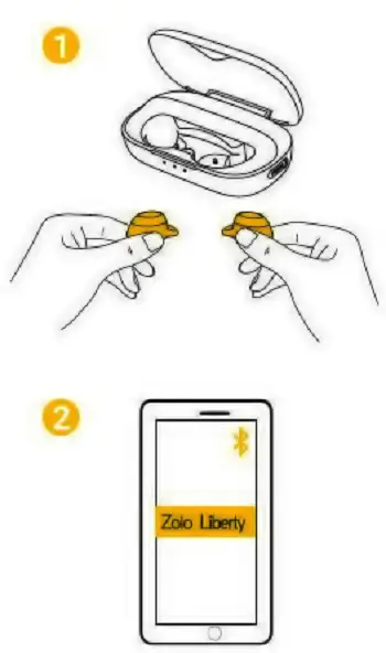 (1) Open the charging case and toke the earbuds out, Zolda Liberty turns on automatically