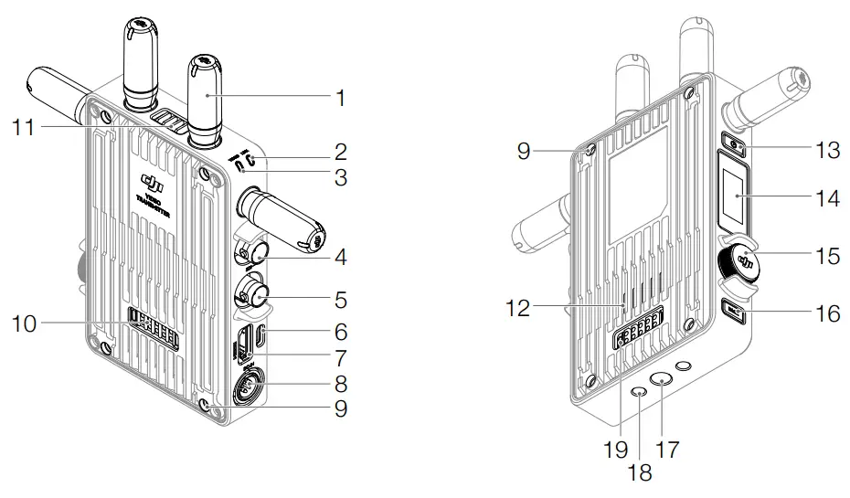 Inputs the signal from the video source to the transmitter. - USB-C Port