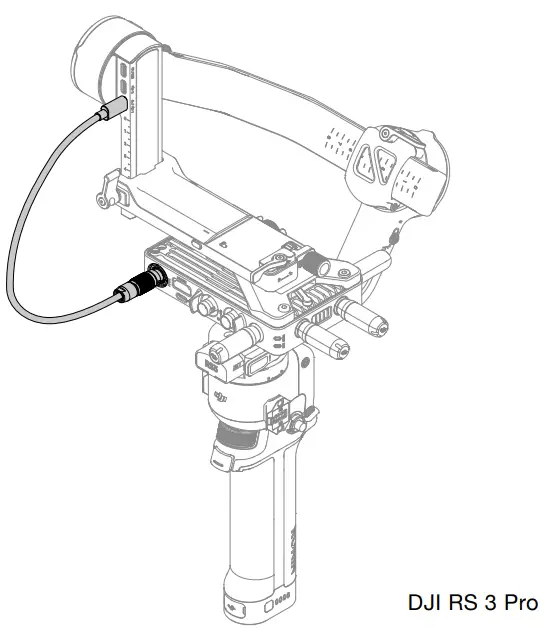 Connect the video transmission/LiDAR Range Finder port (USB-C) on DJI RS 3 Pro to the DC-in port on the video transmitter for power supply from DJI RS 3 Pro.