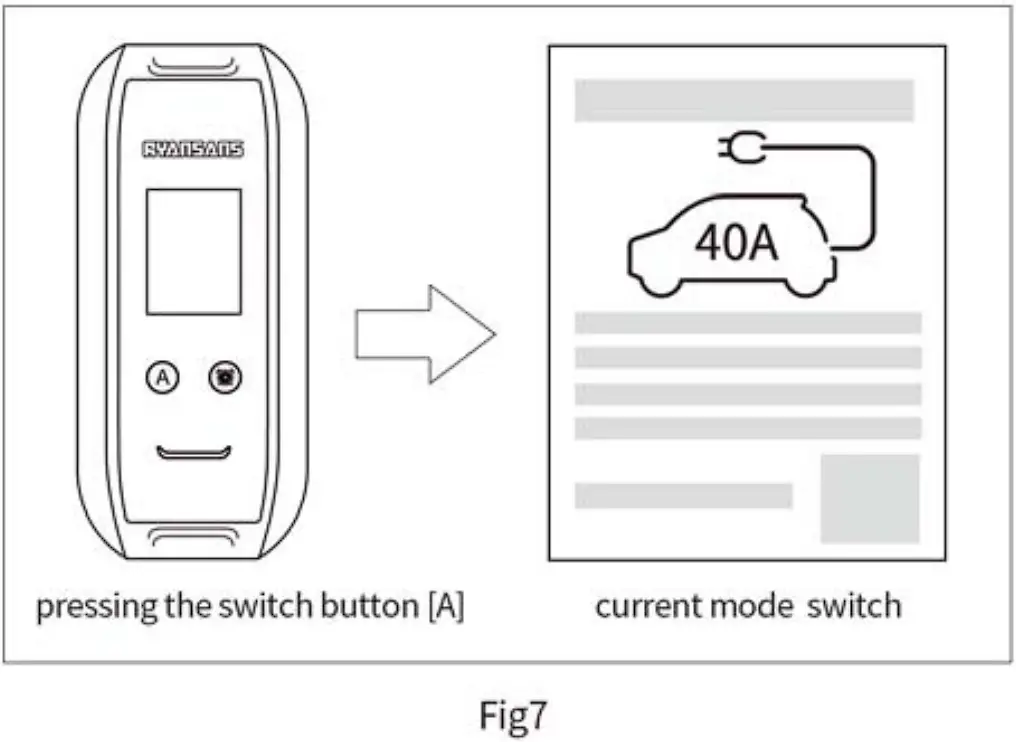 Ensure cable is compliance with national standard. - Press the button [A] to switch charging current mode.