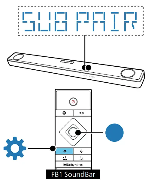> select “SUB PAIR” > Then press Ο (Enter) to confirm the subwoofer pairing mode.