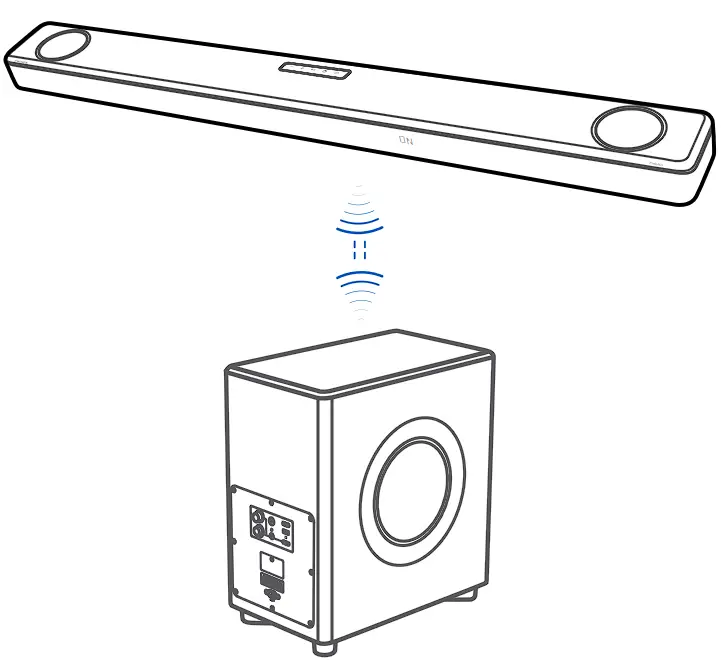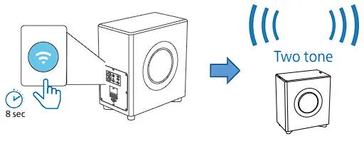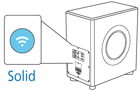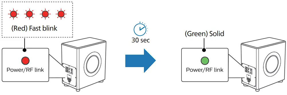 - Wait until the Power/RF link indicator will light up solid on the subwoofer.