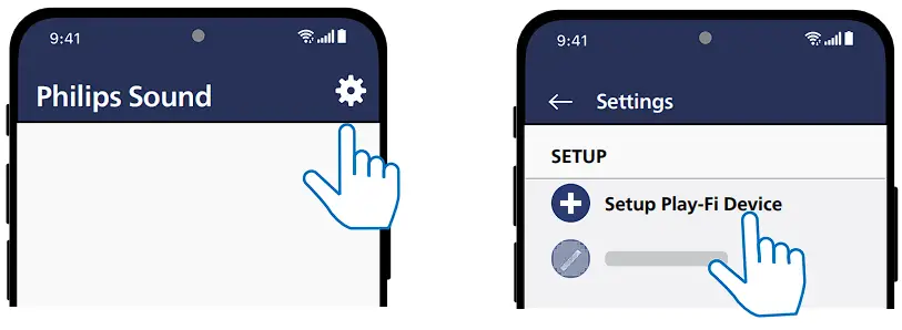 - Launch the Philips Sound app powered by DTS Play-fi. Follow the instructions in the app to connect this product to your Wi-Fi network.