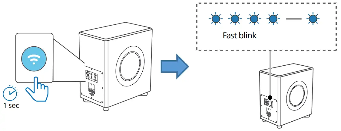 - Wait until the Wi-Fi light indicator on the back cabinet goes from a fast blink to a slow pulse. When it begins pulsing slowly, it indicates that the speaker is entering the Wi-Fi setup mode.