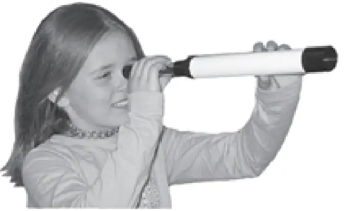 While firmly holding the tripod with one hand, gently pull the optical tube up and out of the tube attachment bracket. You can now hold it up to your eye like an old-fashioned ‘spy glass.’ You will have to hold your telescope steady, or everything will look like it is shaking.