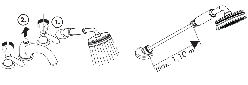 Do not allow the streams of the shower touch sensitive body parts (such as your eyes). An adequate distance must be kept between the shower and you.