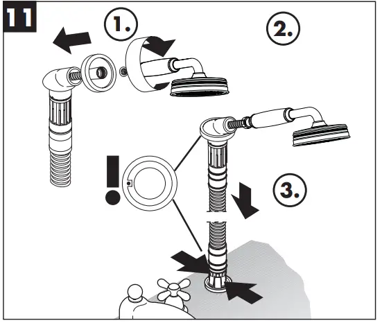 - The mesh washer must be insert to protect the overhead shower against incoming dirt by pipework. Incoming dirt leads to defects or/and can damage parts of the shower; such caused faults voids all liability and guarantee claims.