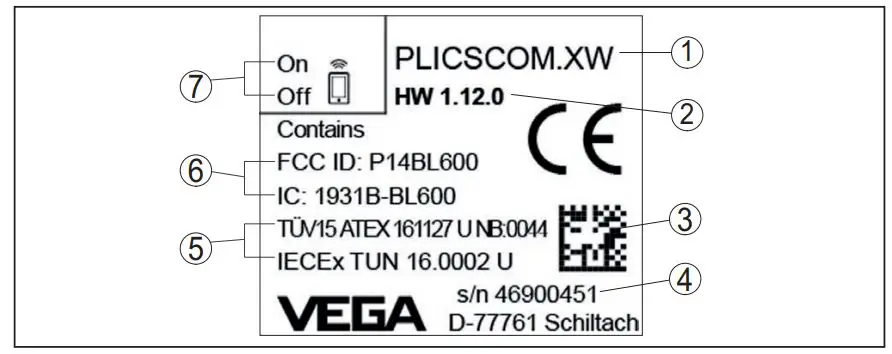 - Data matrix code for VEGA Tools app 3 Serial number of the instrument