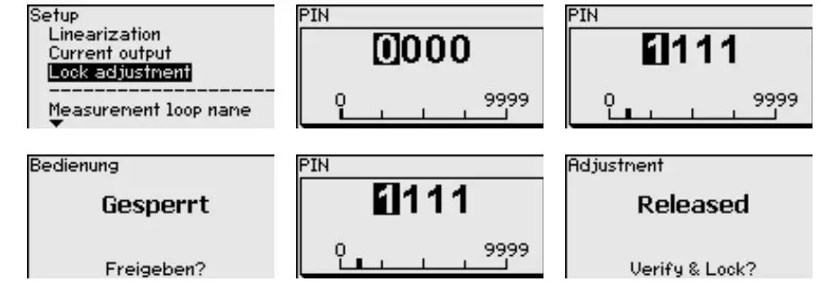 After the sensor PIN has been changed, sensor adjustment can be enabled again. For access (authentication) with Bluetooth, the PIN is still effective.