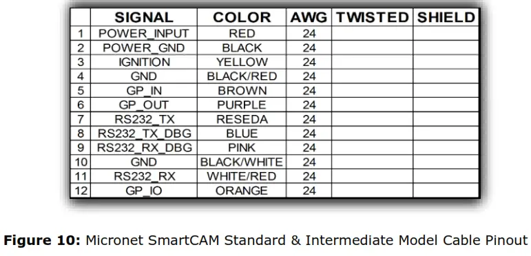 The SmartCAM™ enhanced model has the following interfaces found on its main cable harness which is soldered