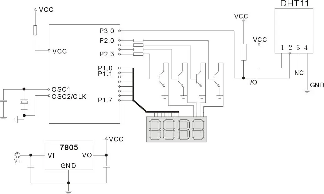Connecting the typical application circuit shown above the microprocessor and DHT11, DATA pull-up and microprocessor I/O port.