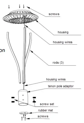 - Screw the top of (3) rods into the housing. Be sure the housing clips are properly engaged onto the rods.