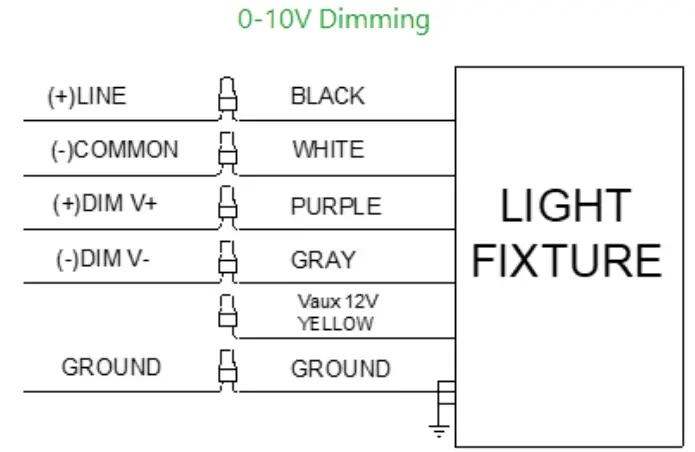 - Connect the GROUND wire from fixture to supply ground. DO NOT connect the GROUND of the dimming fixture to the output.