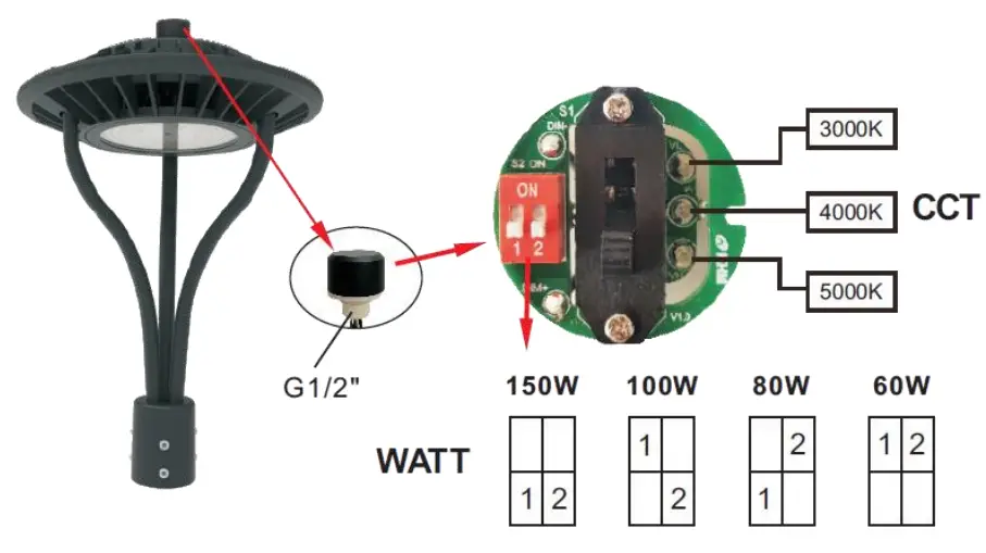 WATTAGE AND CCT ADJUSTABLE TABLE SWITCH SETTING